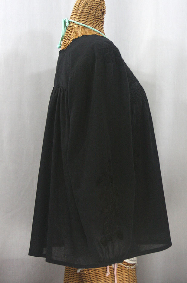"La Marina Larga" Embroidered Long Sleeve Peasant Blouse - All Black