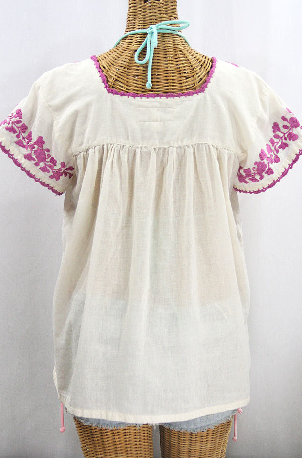 "La Marina Corta" Embroidered Mexican Peasant Blouse - Off White + Rose Pink