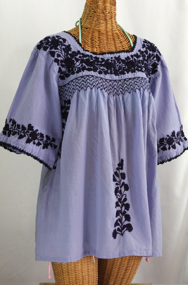 "La Marina" Embroidered Mexican Blouse - Periwinkle + Navy Embroidery