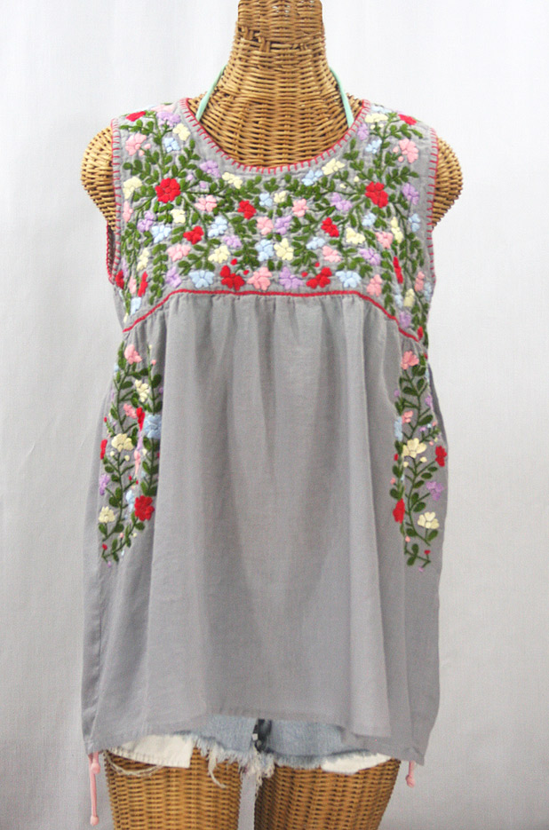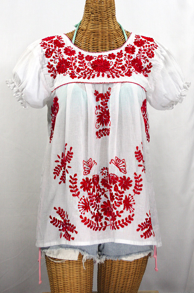 Our hand embroidered Vintage Mexican-style peasant tops capture the essence of the beach gypsy's lifestyle: Freewheeling and adventurous; care-free and ever beautiful. Light and airy cotton fabric caringly embroidered by hand. Also known as Women's Huichol and China Poblana Blouses, Mexican peasant tops are perfect apres surf attire on hot summer afternoons. Our colorful floral patterns are faithful tributes to the time honored traditional Oaxacan Mexican peasant blouses and peasant tops that came to prominence in the 1970's.