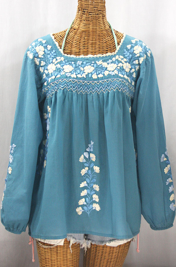 "La Marina Larga" Smocked Long Sleeve Embroidered Blouse